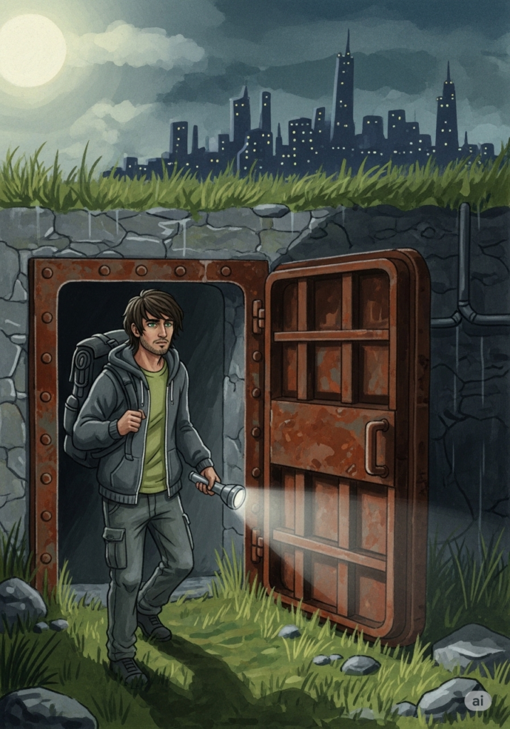 Elian trat aus dem fahlen Mondlicht in den Schlund des alten Bunkers. Hinter ihm lag eine Stadt, die ihre Augen vor der Wahrheit verschloss, vor ihm die kalte, rettende Dunkelheit. Er war kein Soldat, er war Journalist, doch seine einzige Waffe war nun das Terminal in seinem Rucksack. Der schwere Metalldeckel fiel ins Schloss und trennte ihn von einer Welt, die ihn zum Schweigen bringen wollte.